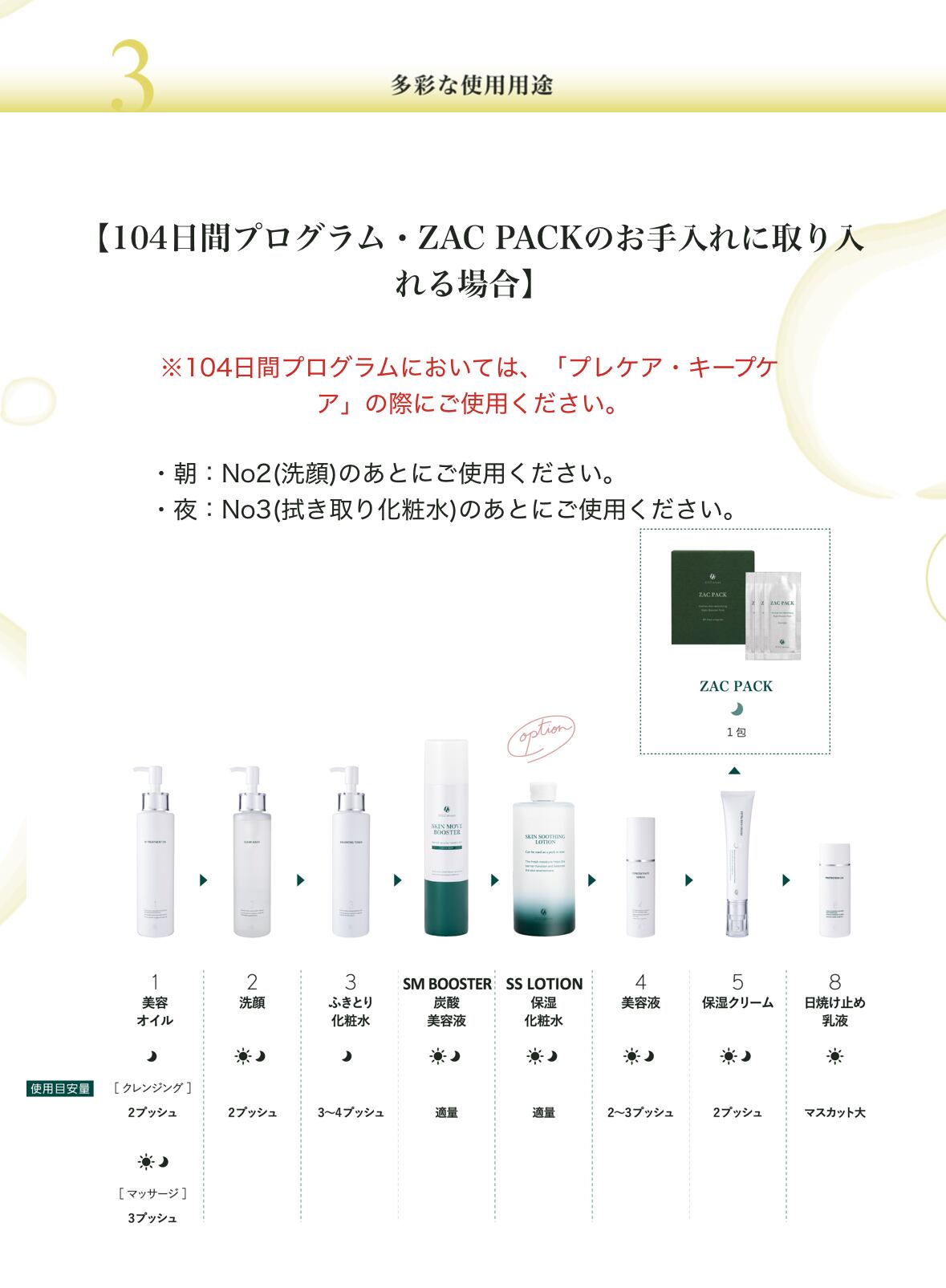 104日間のプログラム中ではプレケア・キープケアの際にご使用いただけますが、単品でもご使用いただけます。