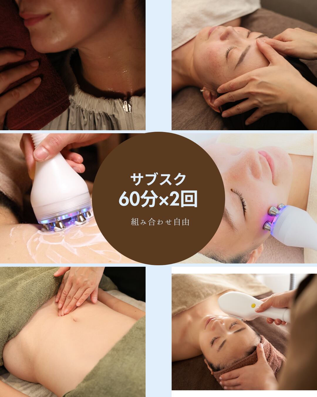 以下のメニューから、お疲れの箇所や肌状態に合わせて自由に組み合わせていただけます。